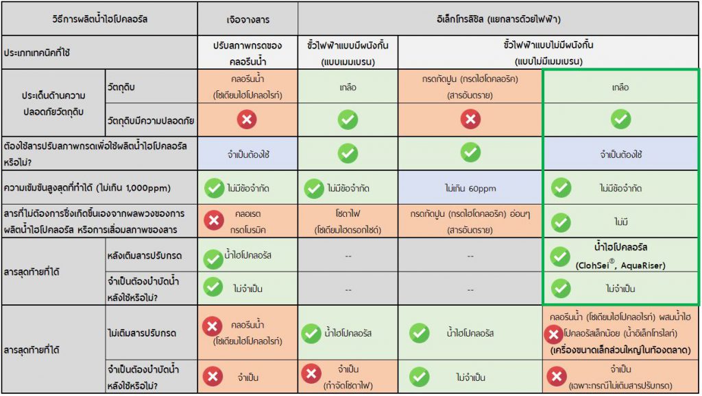 เปรียบเทียบเทคโนโลยีการสร้างน้ำไฮโปคลอรัสแบบต่างๆ